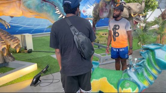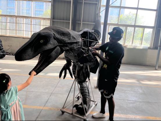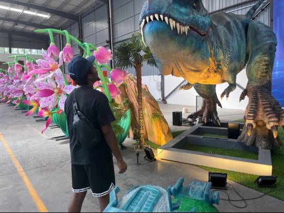 In the factory exhibition area, we showed the customers high-end custom animatronic dinosaur models, which have interactive functions and come with their own light shows. The roaring sounds of the dinosaurs make people feel immersive, as if they were in the ancient times when dinosaurs were resurrected.